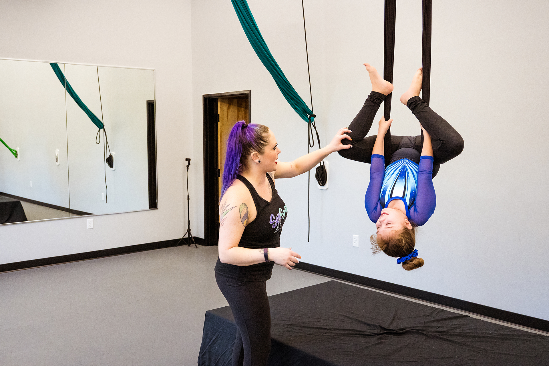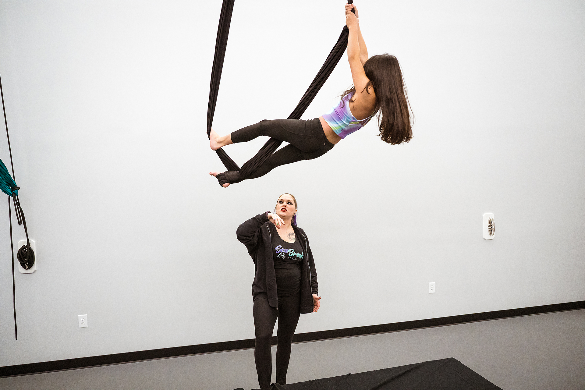 Parents are encouraged to come to the aerial training room for the last 5 minutes of class to see all the amazing skills flyers have been working on in class.